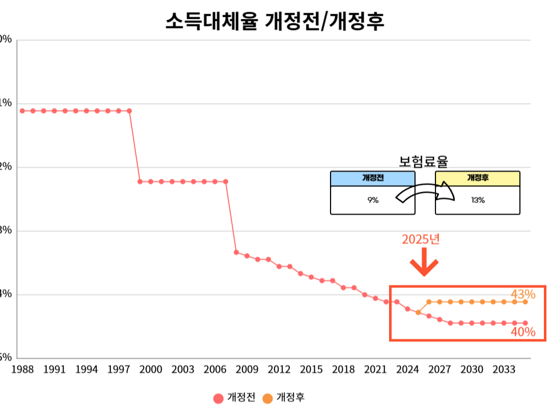 2. 소득대체율은 2026년부터 43%로 상향조정